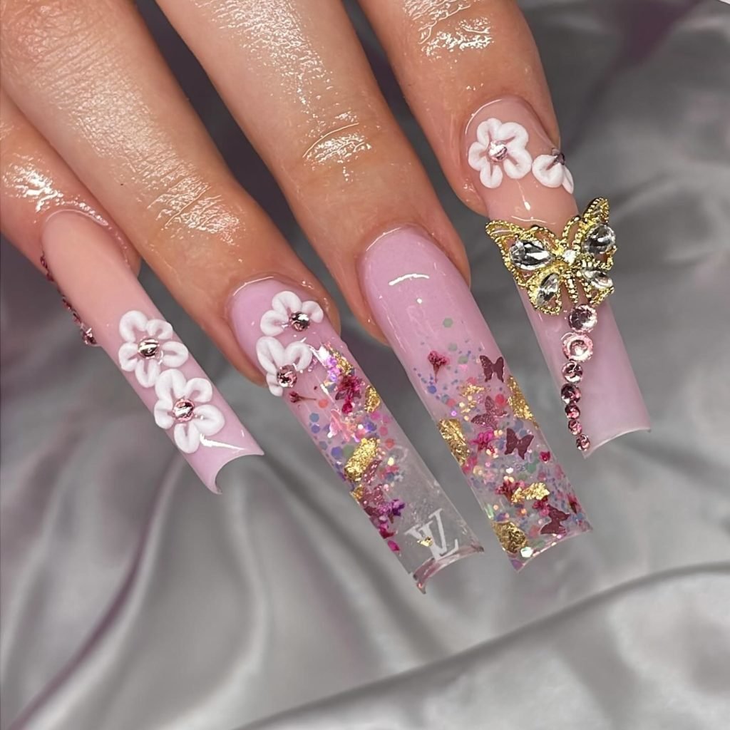 Long Acrylic Nails with Charms Inspo Long square acrylic nails Long 2