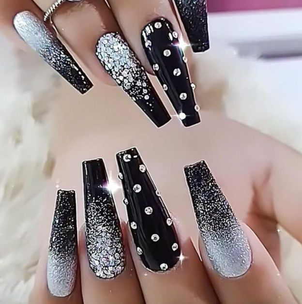 15 Most Popular Black Nails With Rhinestones The FSHN 12
