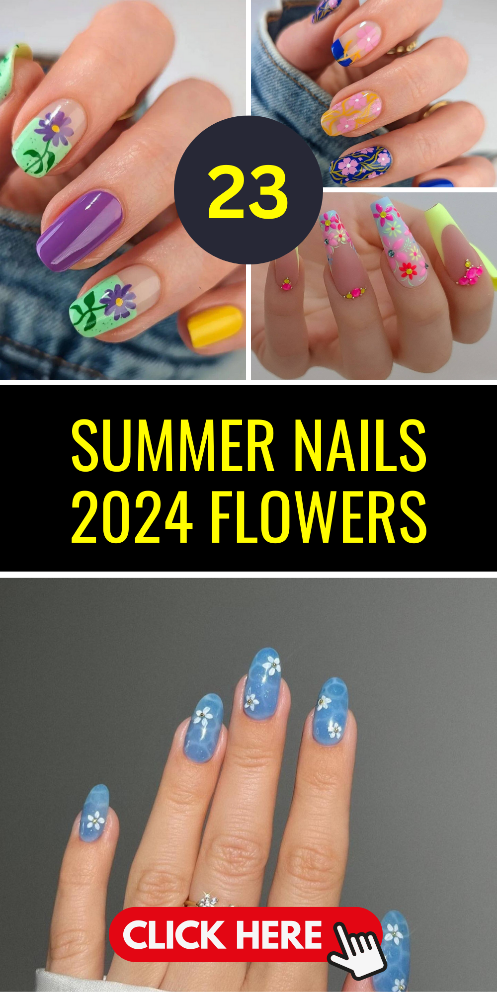 20 Flower Nails for Summer 2024 in 2024 Summer nails Flower nails 3