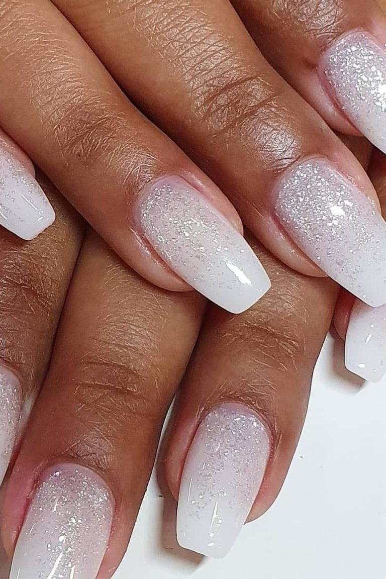 22 Cute Chic White Glitter Nails for Your Wedding Mani Inspo 12