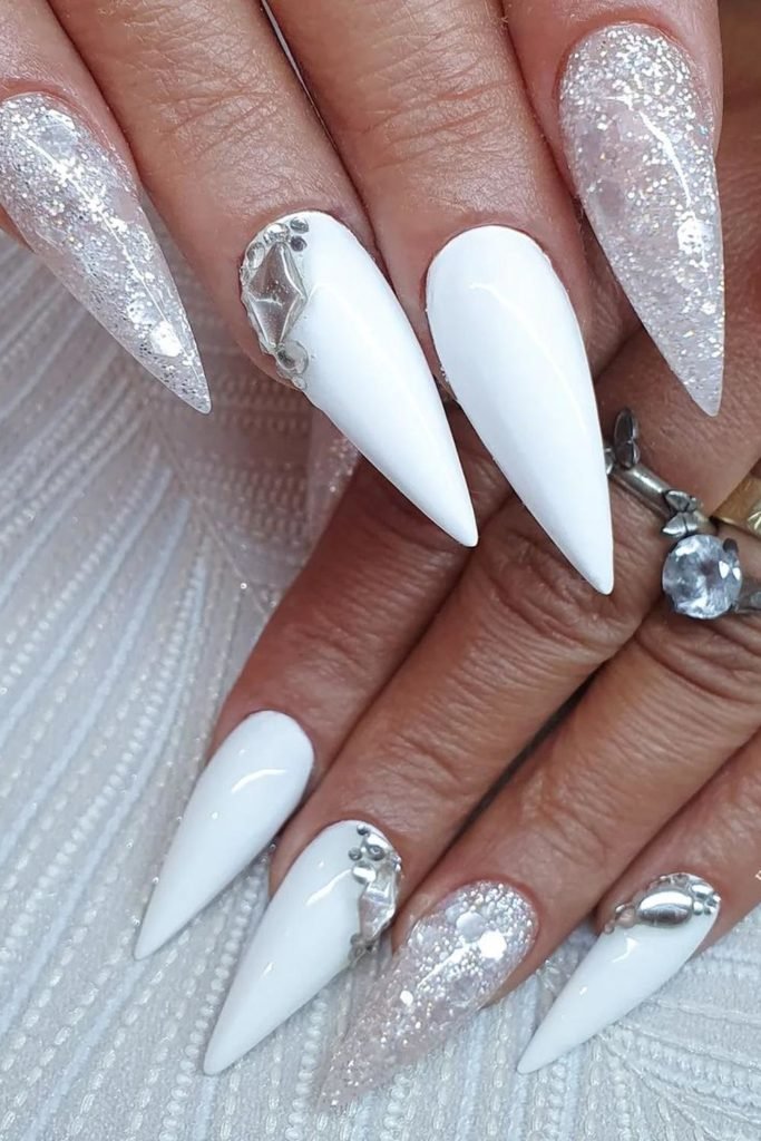 22 Cute Chic White Glitter Nails for Your Wedding Mani Inspo 10