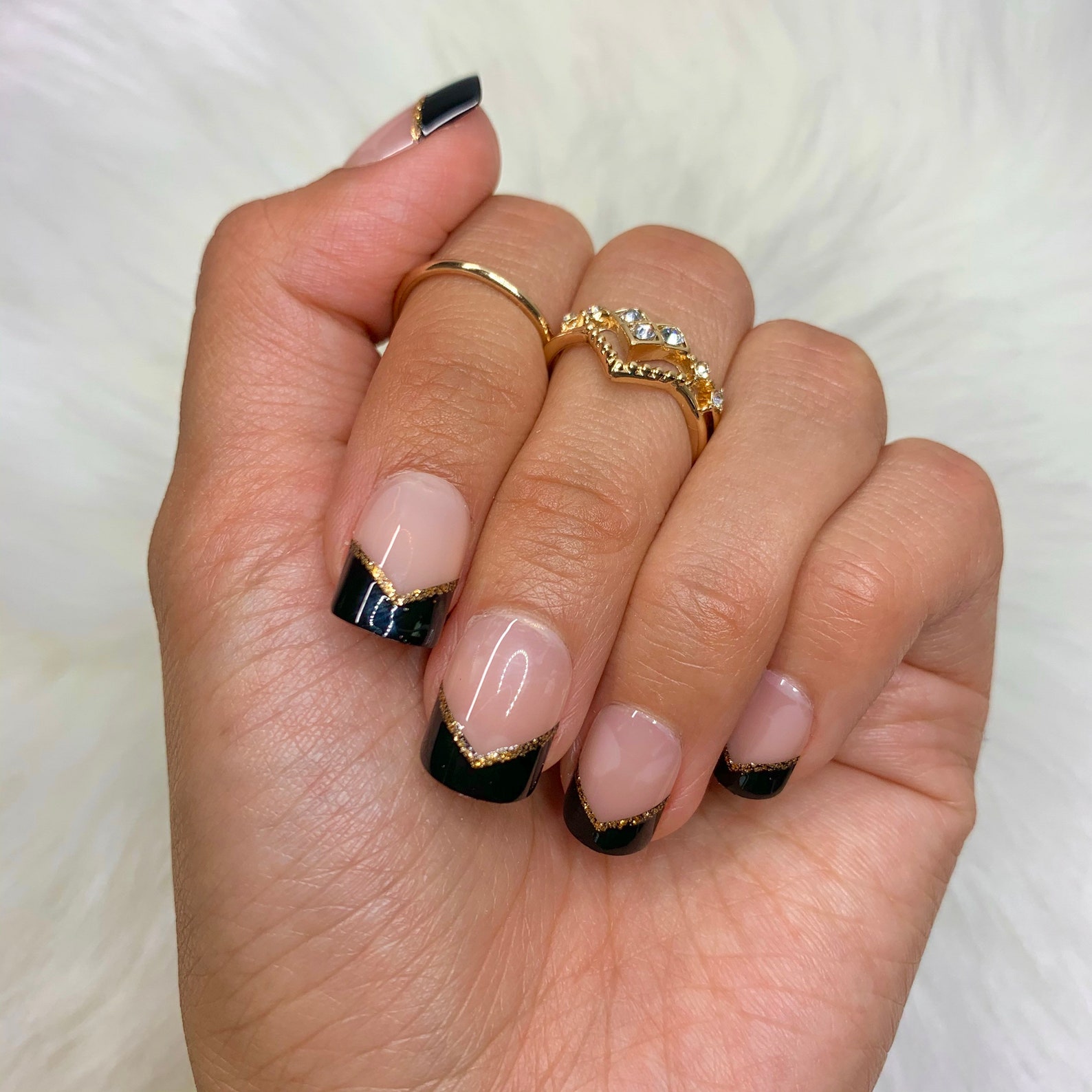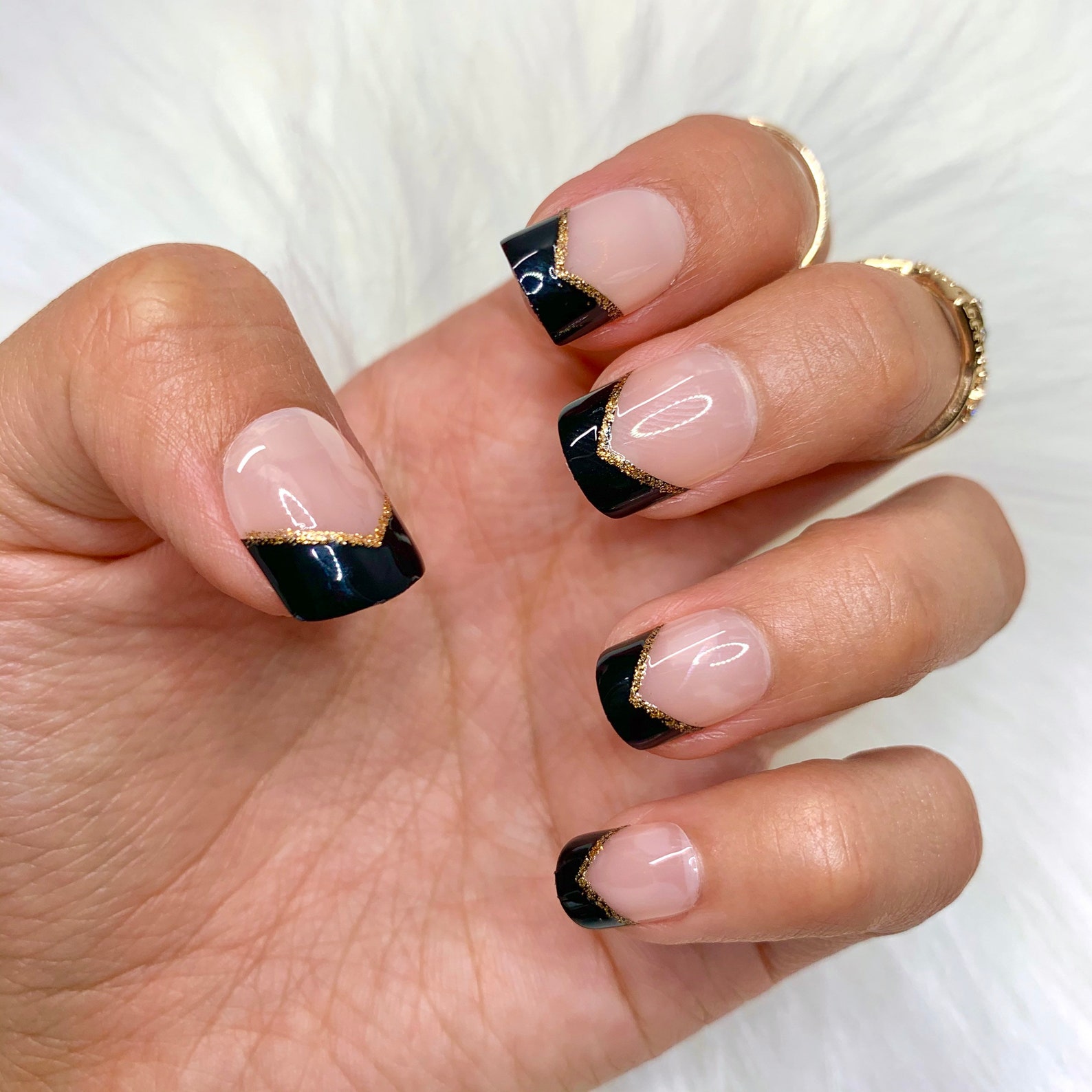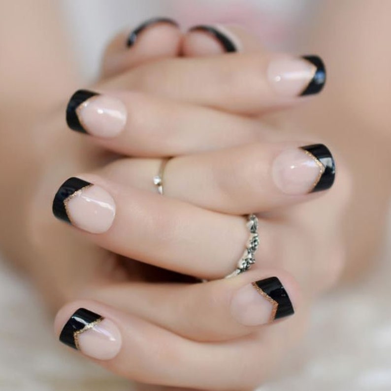 Short Press on Nails Black French Tip Nails Short Nails Etsy 1