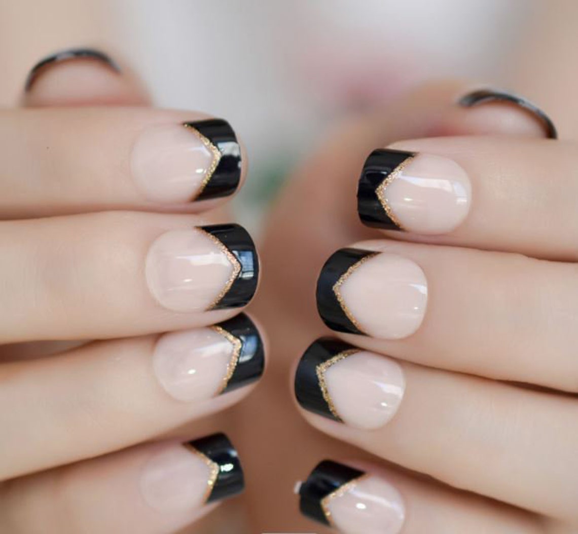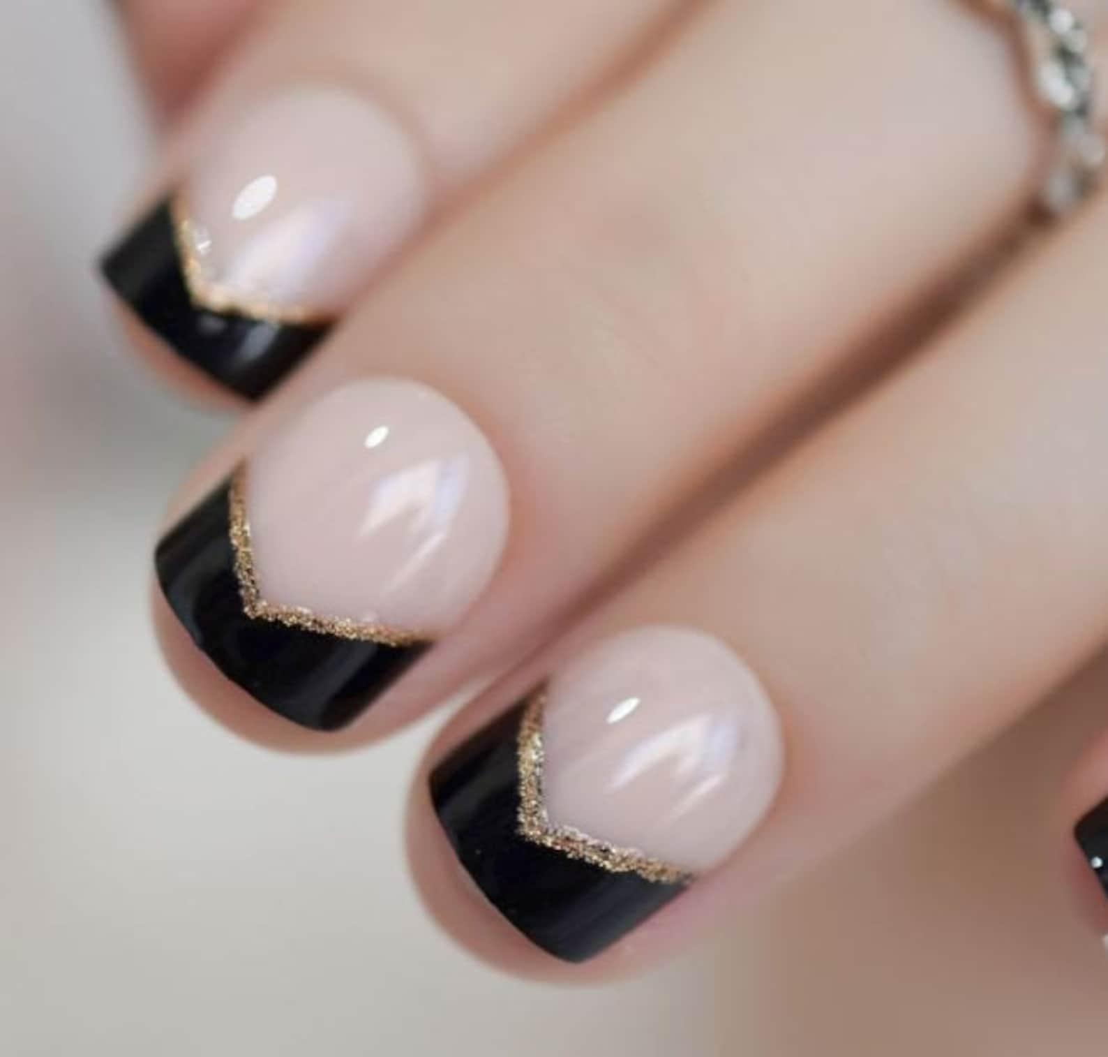 24 Pcs Black French Tip Short Nails Press on Nails Nail Etsy 9
