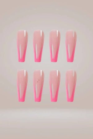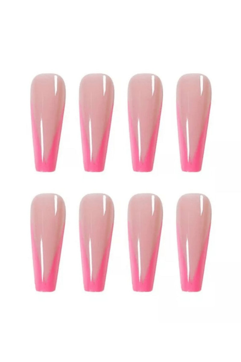 Hot Pink Long Coffin French Tip Press On Nails TGC Boutique 2