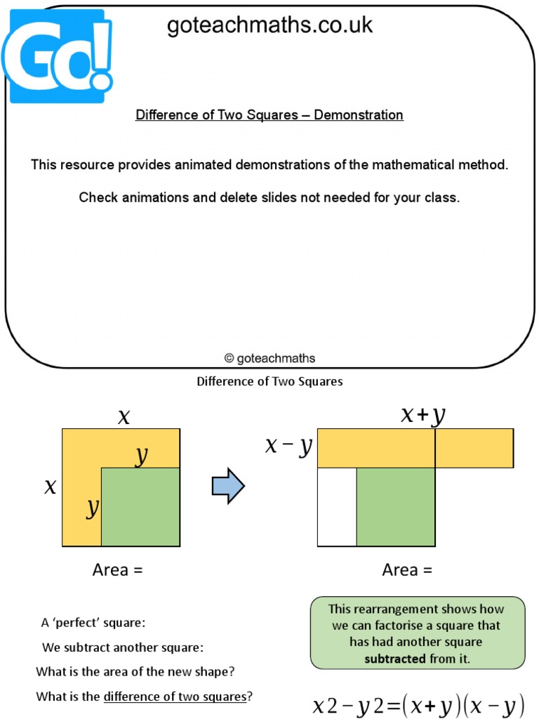 Difference of Two Squares Demonstration PDF Elementary Mathematics 2