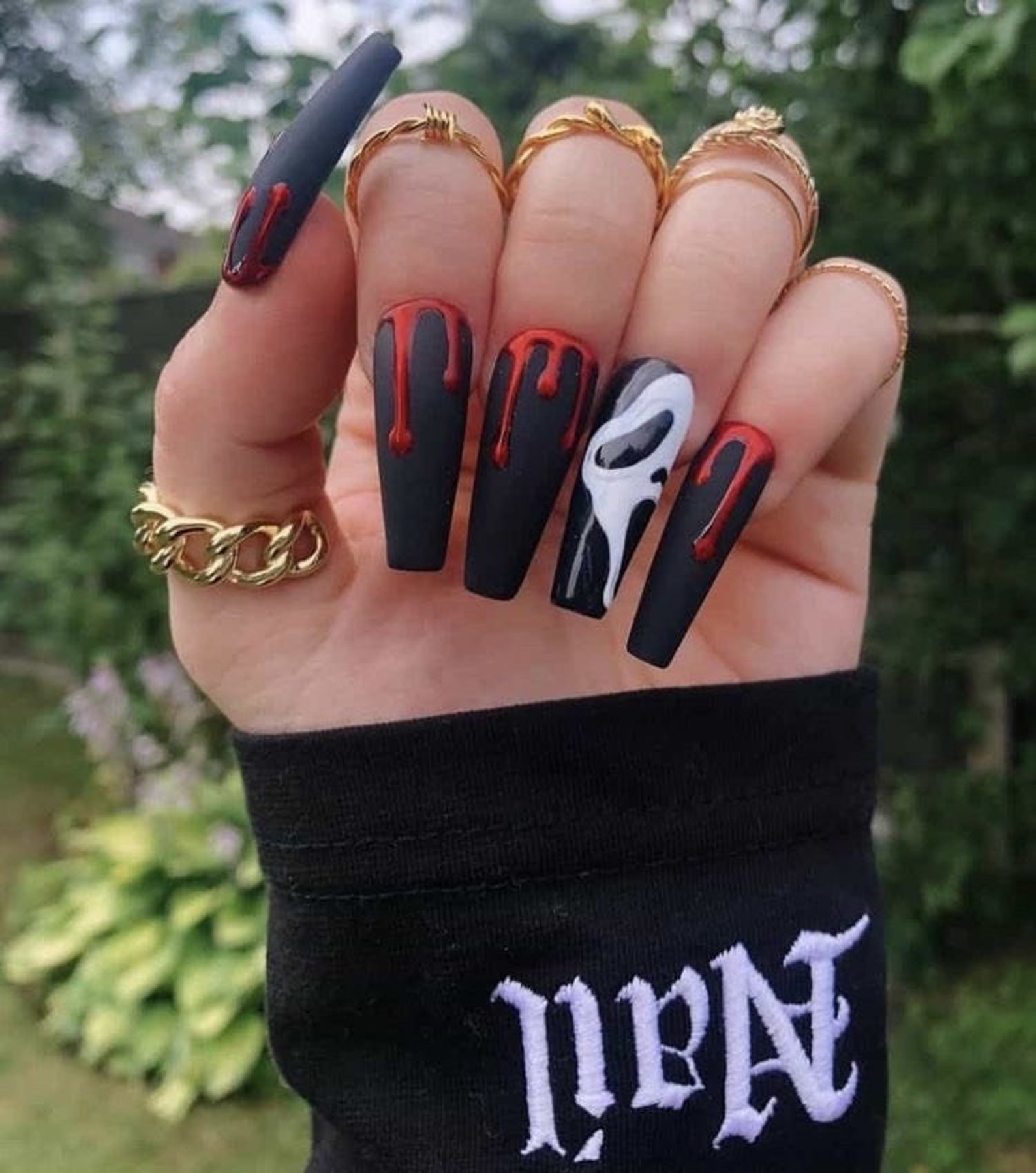 Halloween Black and Red Nails Design Scream Nails Press on Etsy 0