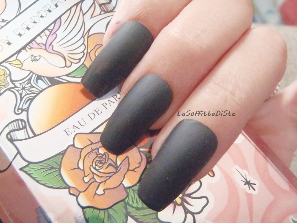 Matte Black Coffin Nails Matt Black Gothic Wedding Etsy 9