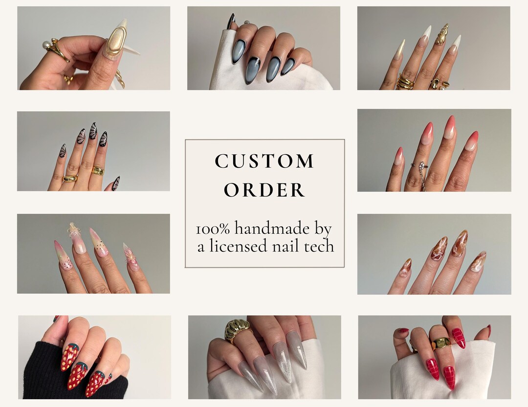 CUSTOM Press on Nails Handmade Nails Custom Design Gel x Fake Nails 12