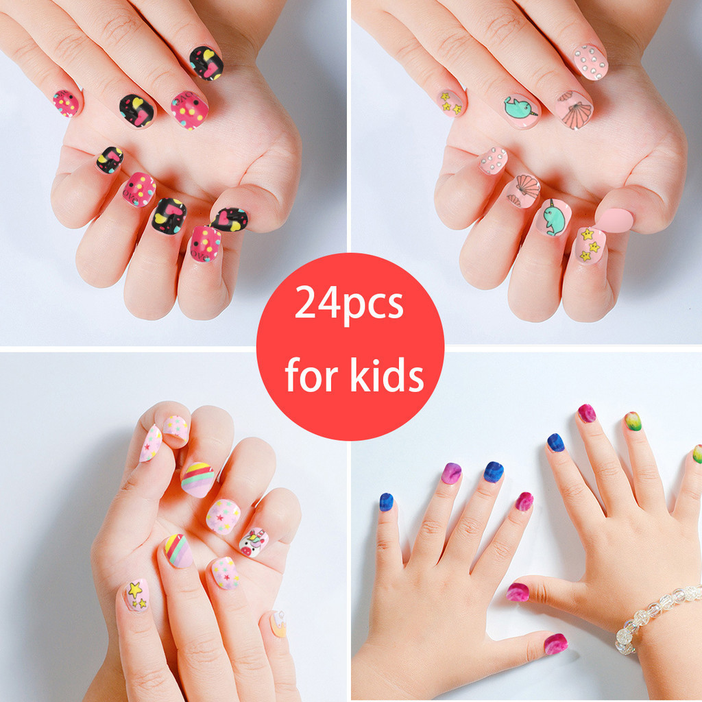 Children Press on Nails 24 Pcs Fake Nails Tips for Kids Acrylic Nails 1