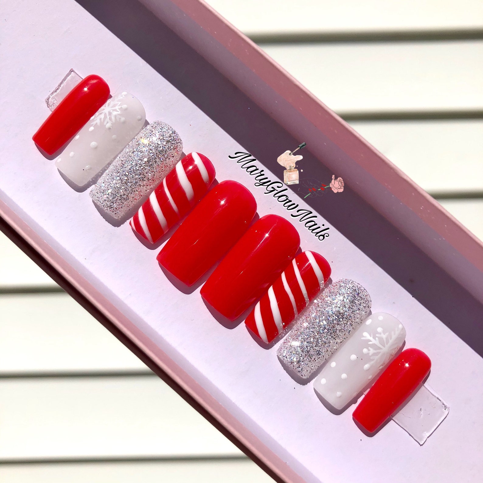 Holiday Press on Nails Reusable Nails Christmas Nails xmas Etsy 0