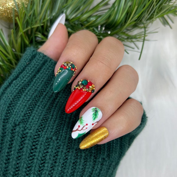XMAS TIME Press on Nails luxury Nails handmade Nails xmas Etsy 12