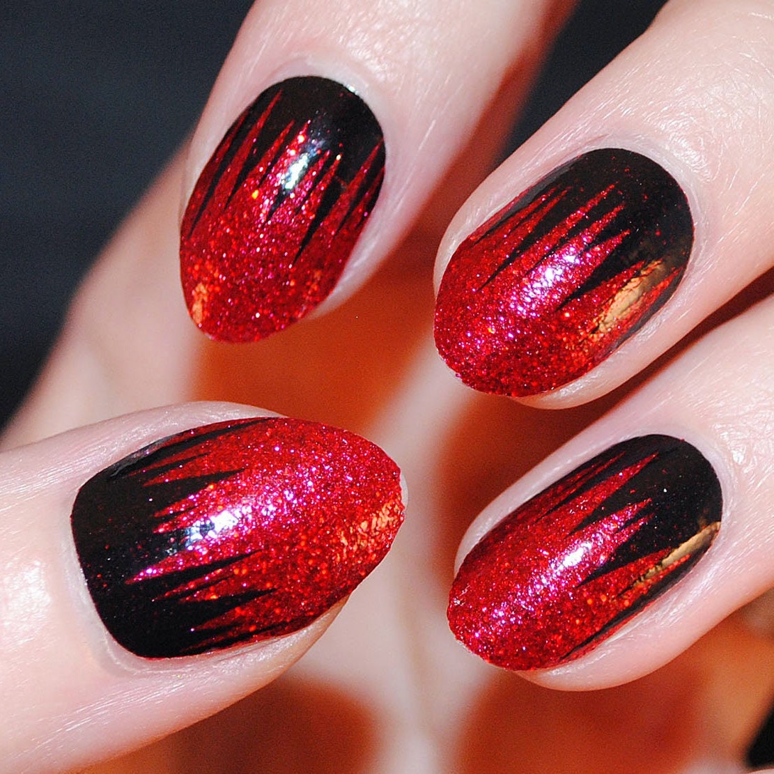 Black And Red Glitter Nails 11