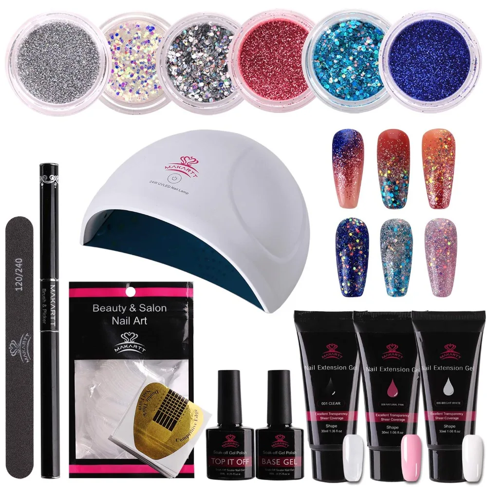 Phoenixy Poly Nail Extension Gel Kit 6 Colors with 36W UV LED Nail 12