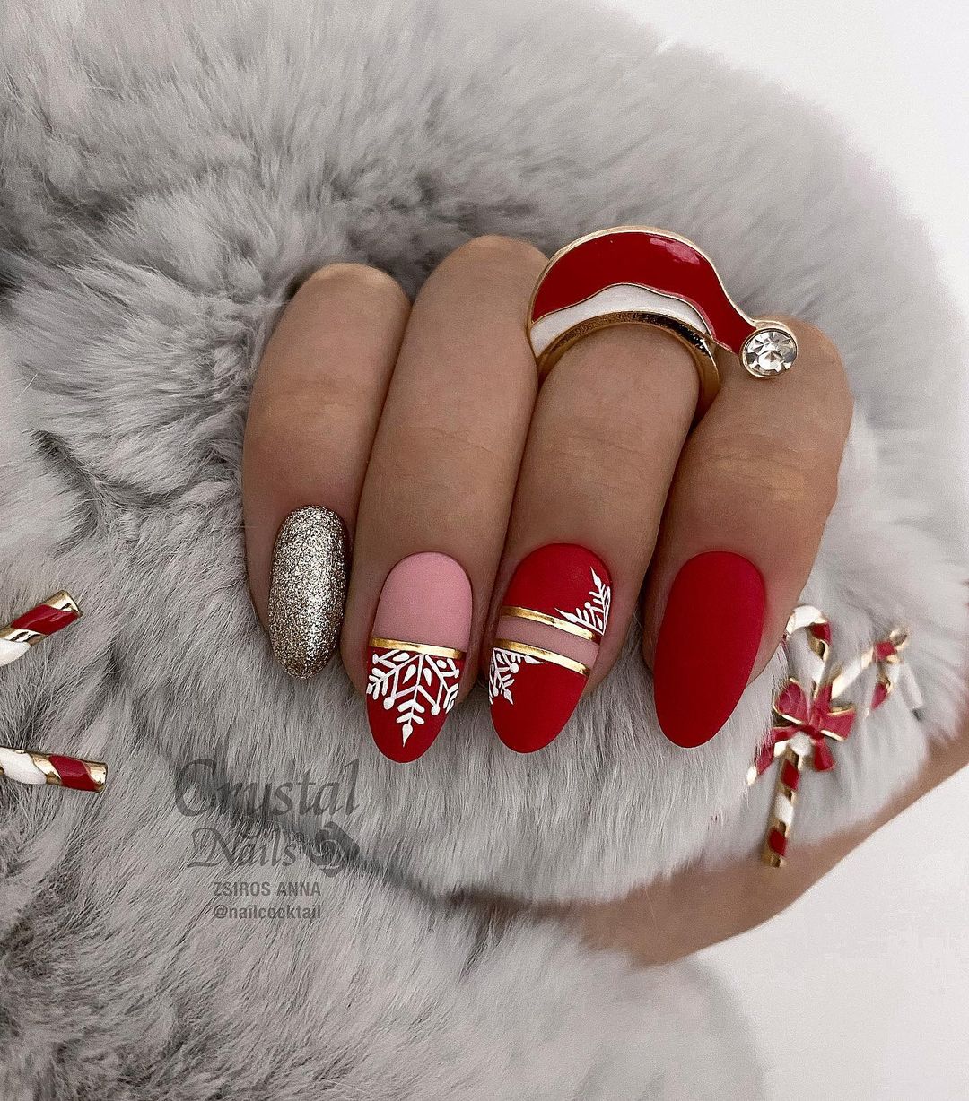 Pin on Manucure Red and silver nails Christmas nail art designs 5