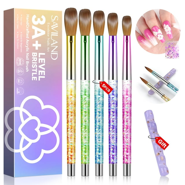 Saviland 5Pcs Acrylic Nail Brushes Kit Nail Art Brushes Set with Nail 8