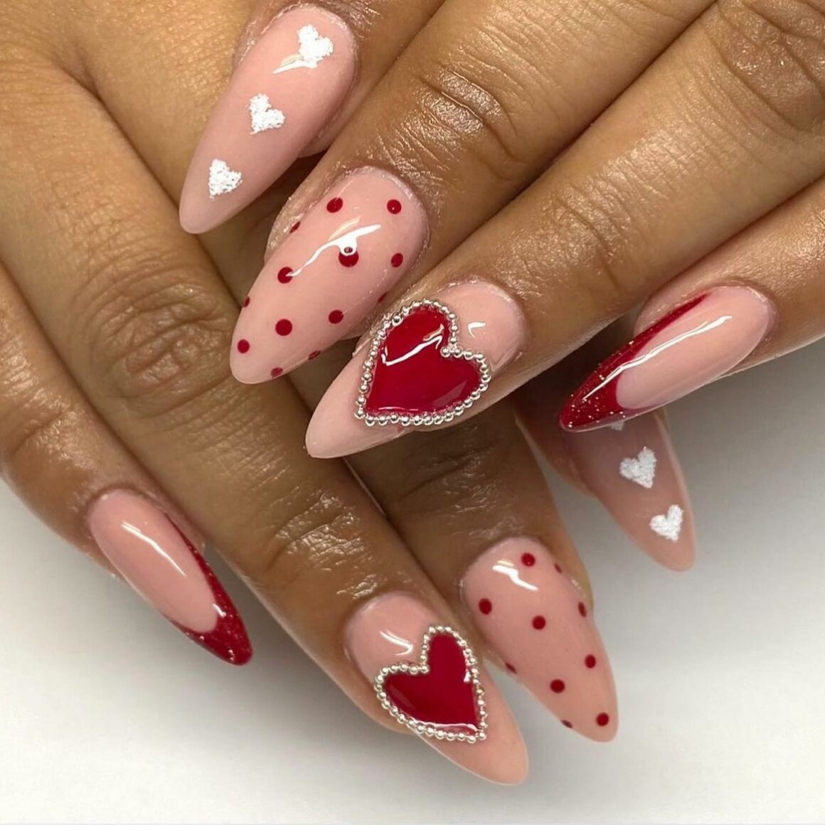 Valentines Almond shape nails inspired by Valentine s Day Nails 3