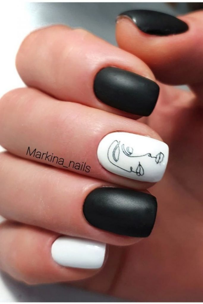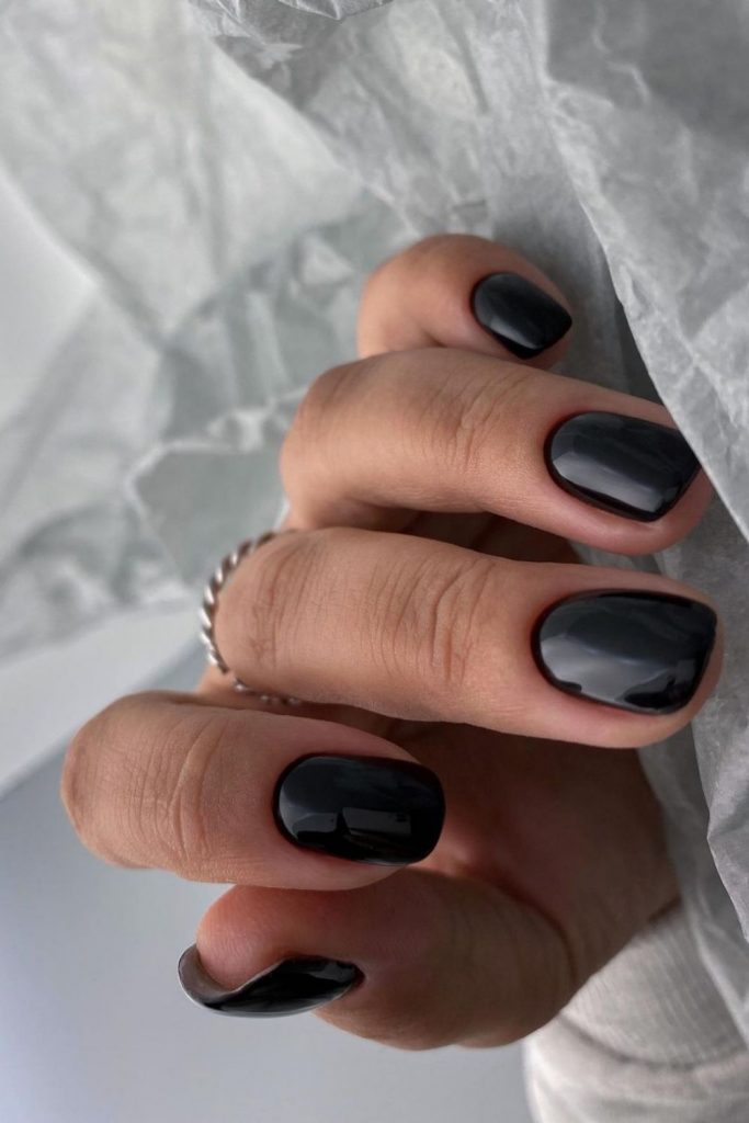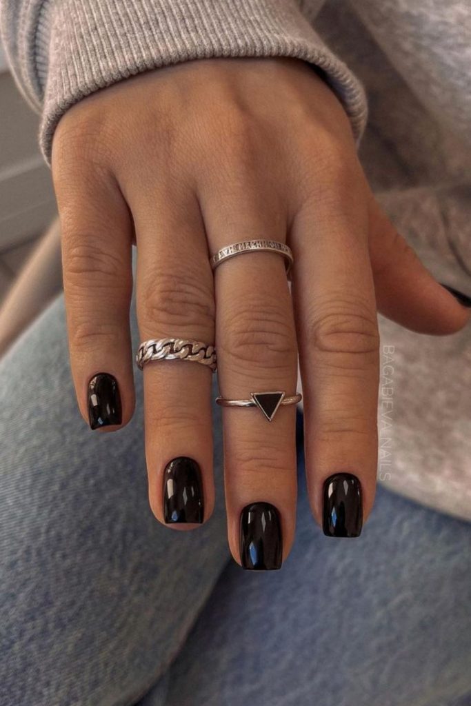 43 Best Black Acrylic Nails Designs in Short square nails for 2021 13