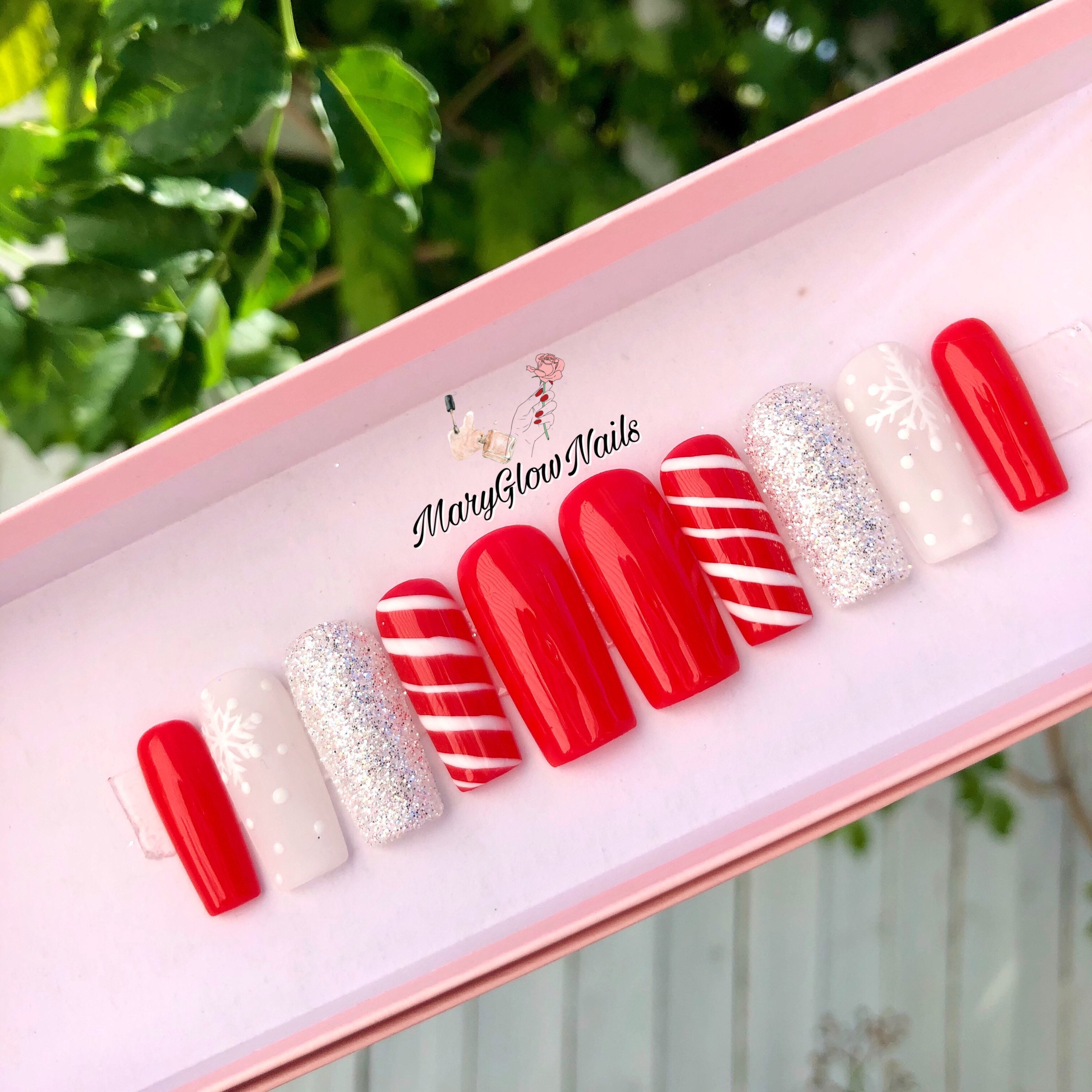 Holiday Press on Nails Reusable Nails Christmas Nails xmas Etsy 5