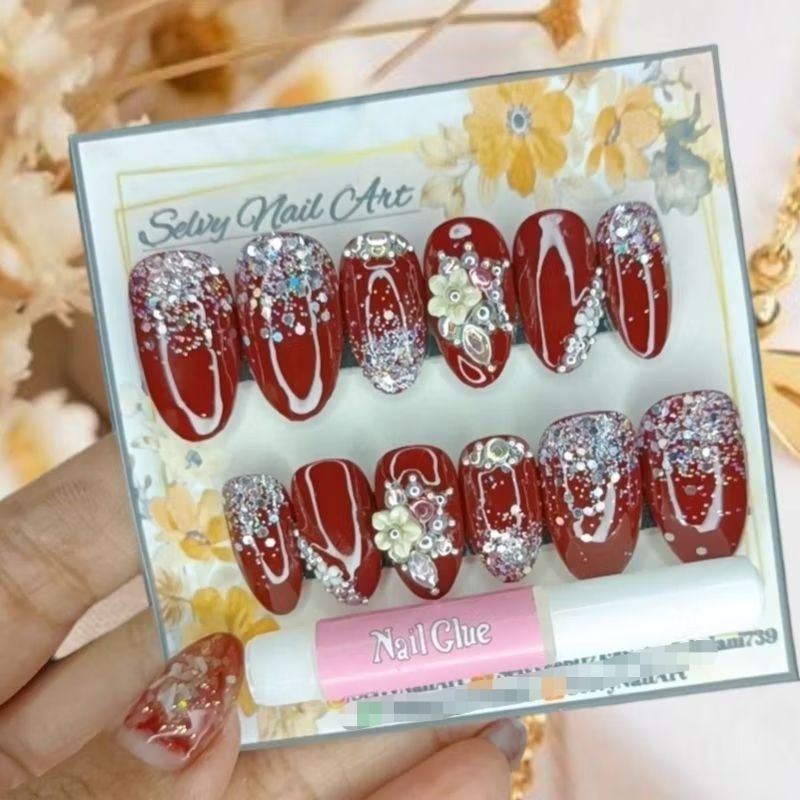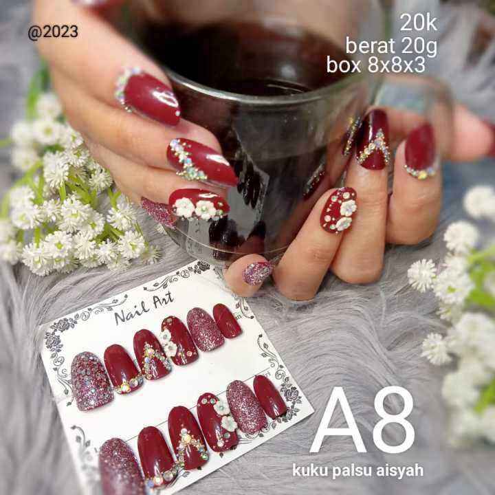 Jual kuku palsu wedding maroon Shopee Indonesia 8