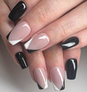 33 Best Black And White French Tip Coffin Nails 2025 Nail Designs Daily 2