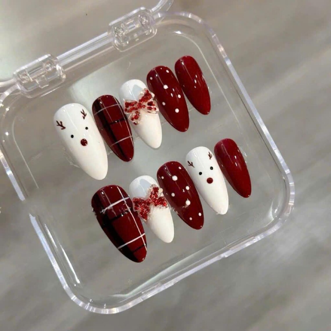 Holiday Press on Nails Set With Reindeer Designs Classy Christmas Nails 3
