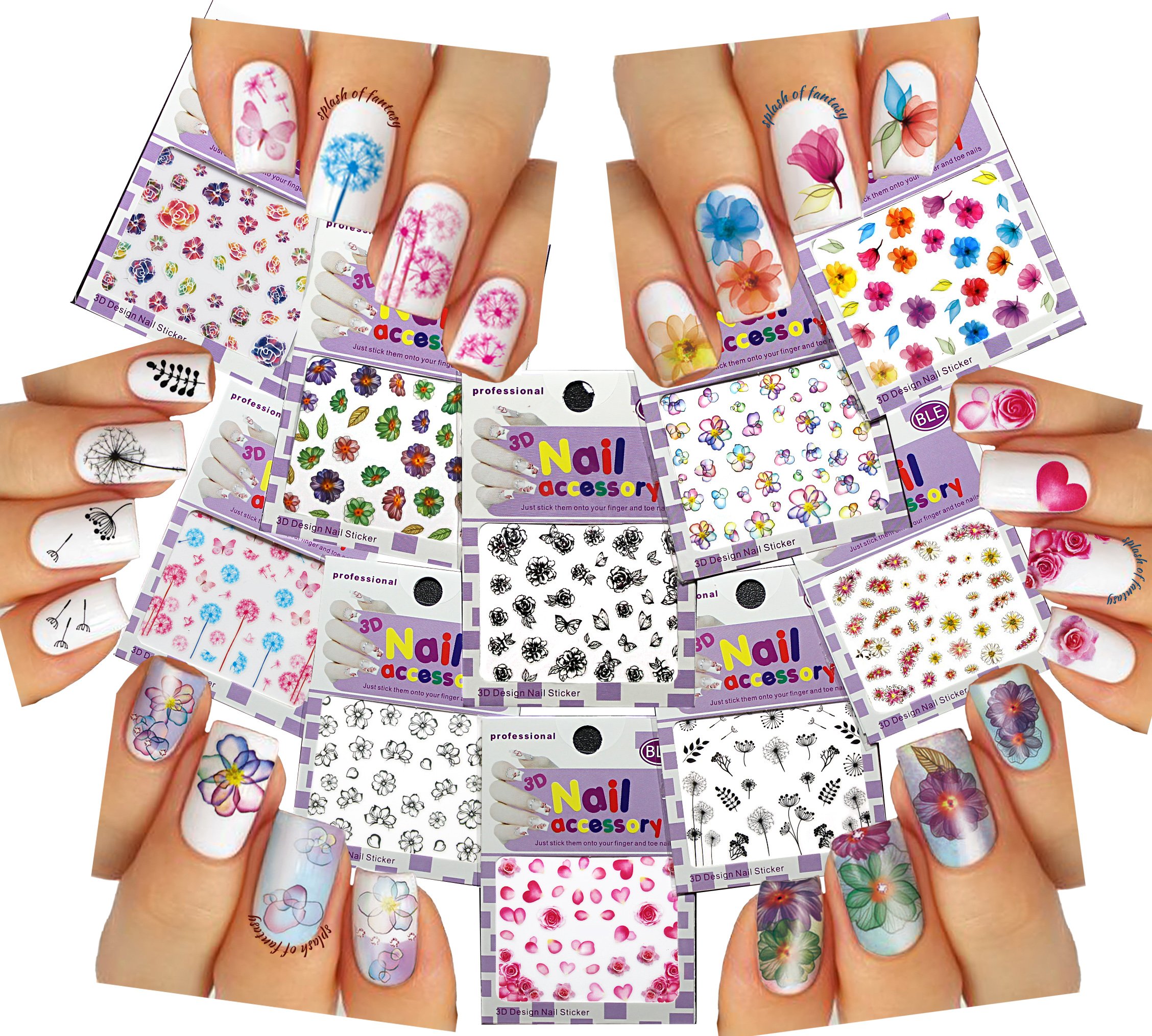 Amazon com Nail Art 3D Stickers Mixed Flower Collection of 10 Decals 0