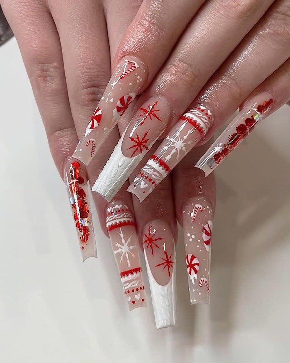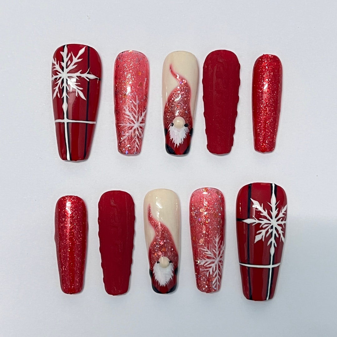 Red And White Christmas Nails Coffin For this look some nails are 10