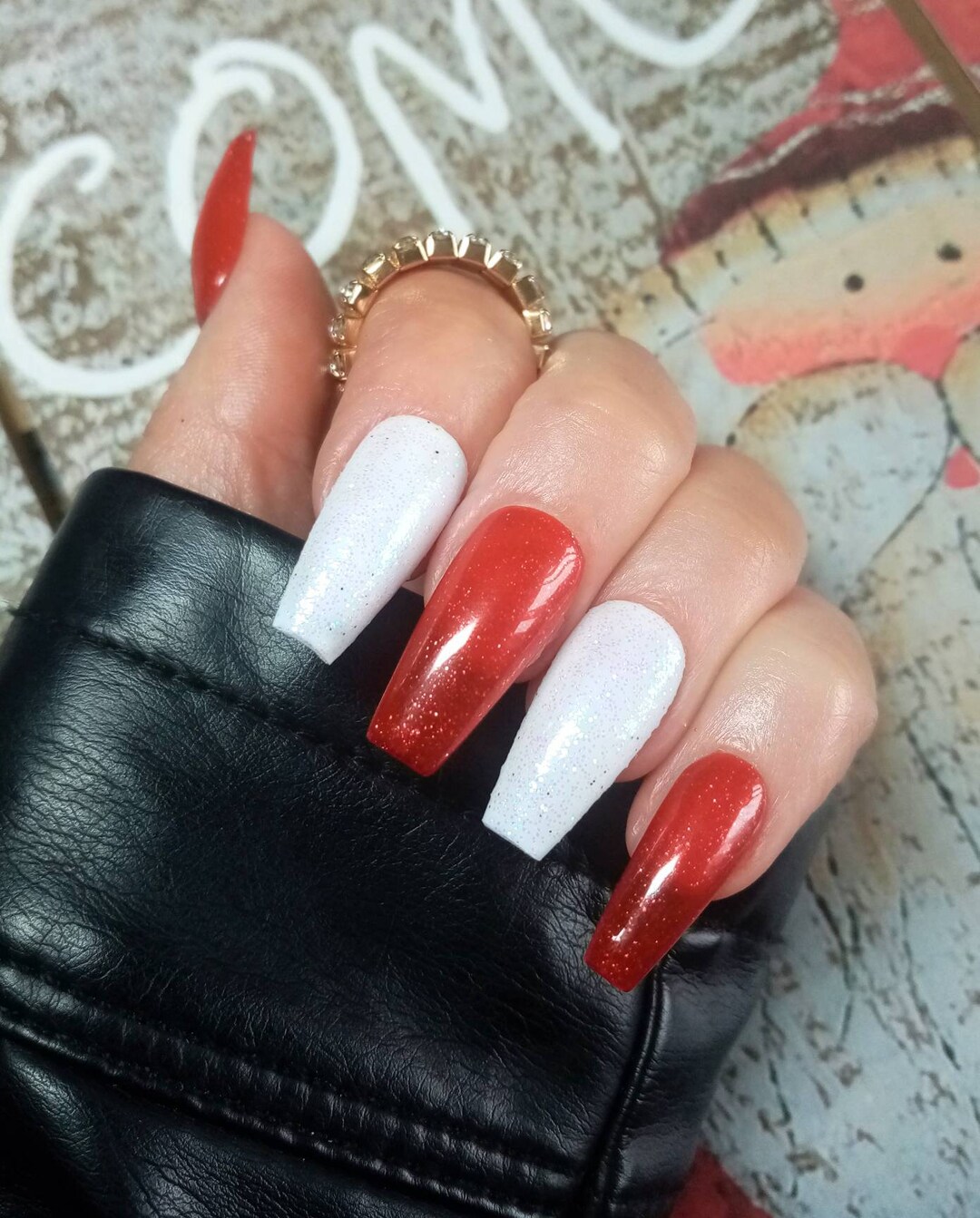 Red And White Christmas Nails Coffin For this look some nails are 12