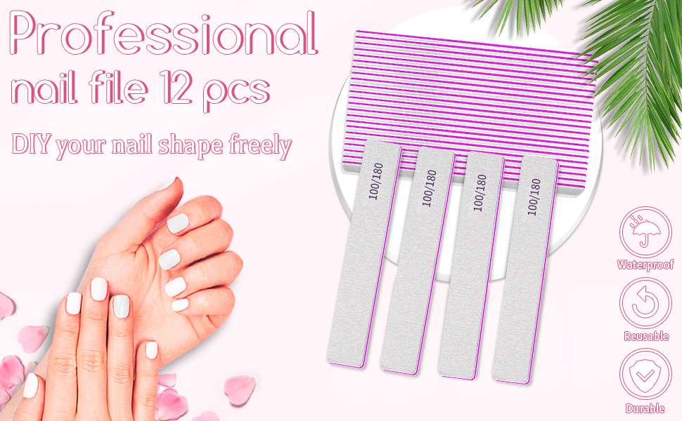 Amazon com Nail File 100 180 Grit Professional Reusable 12 PCS Double 10