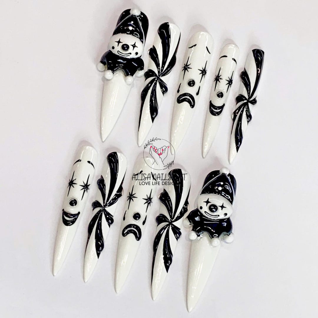 Halloween XXL Long Stiletto Nail Set Black Clown Lover Press on Nails 3