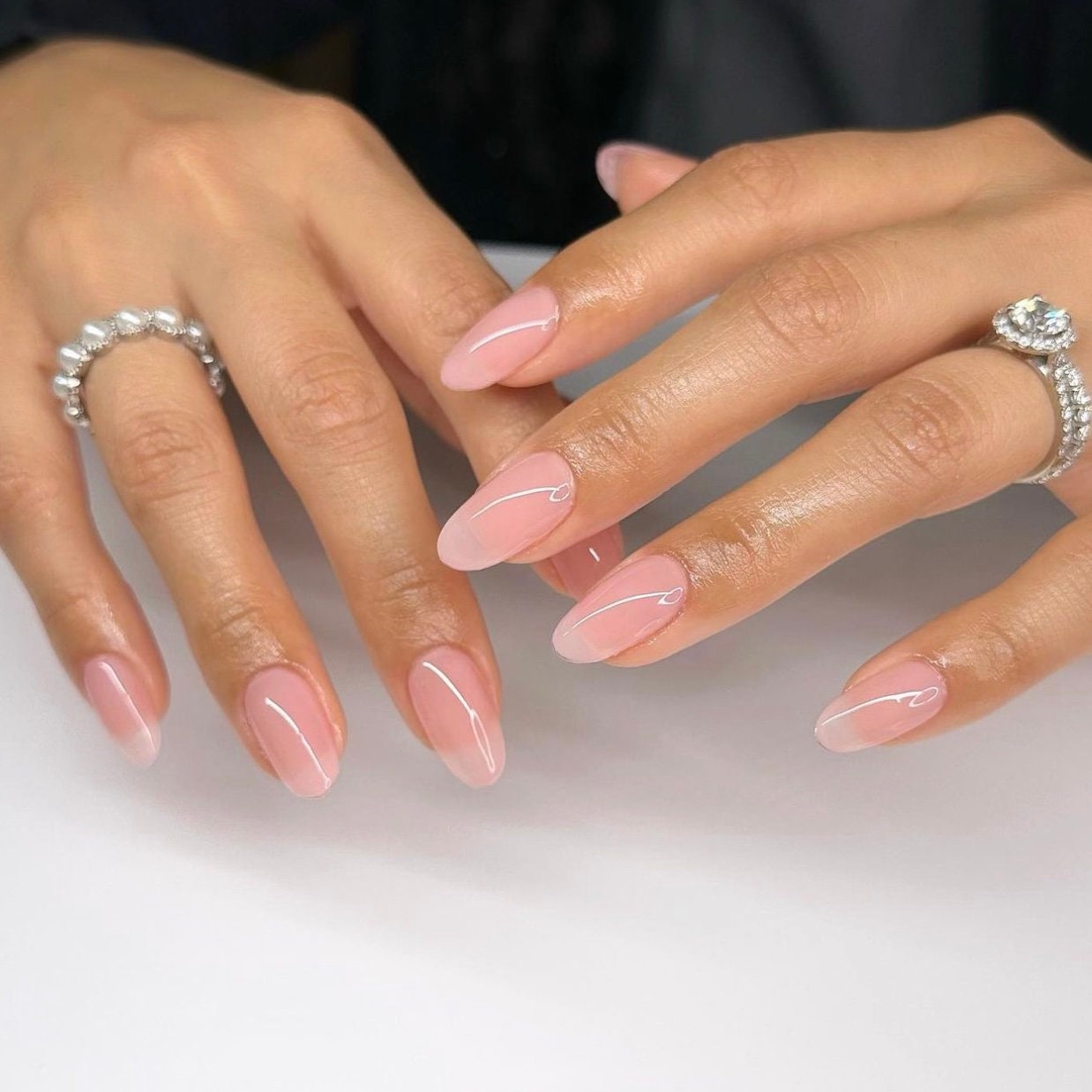 pink and white ombr oval gel nail Oval acrylic nails Ombre gel 2