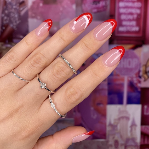 Christmas French Tips Press on Nails Red Nails Christmas Etsy 8