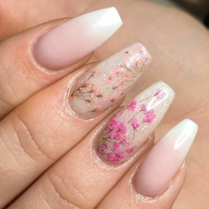 pink and white ombre nails with flowers Floral nails Elegant nails 0