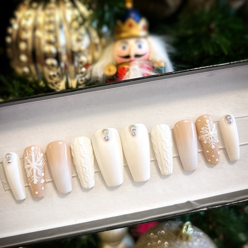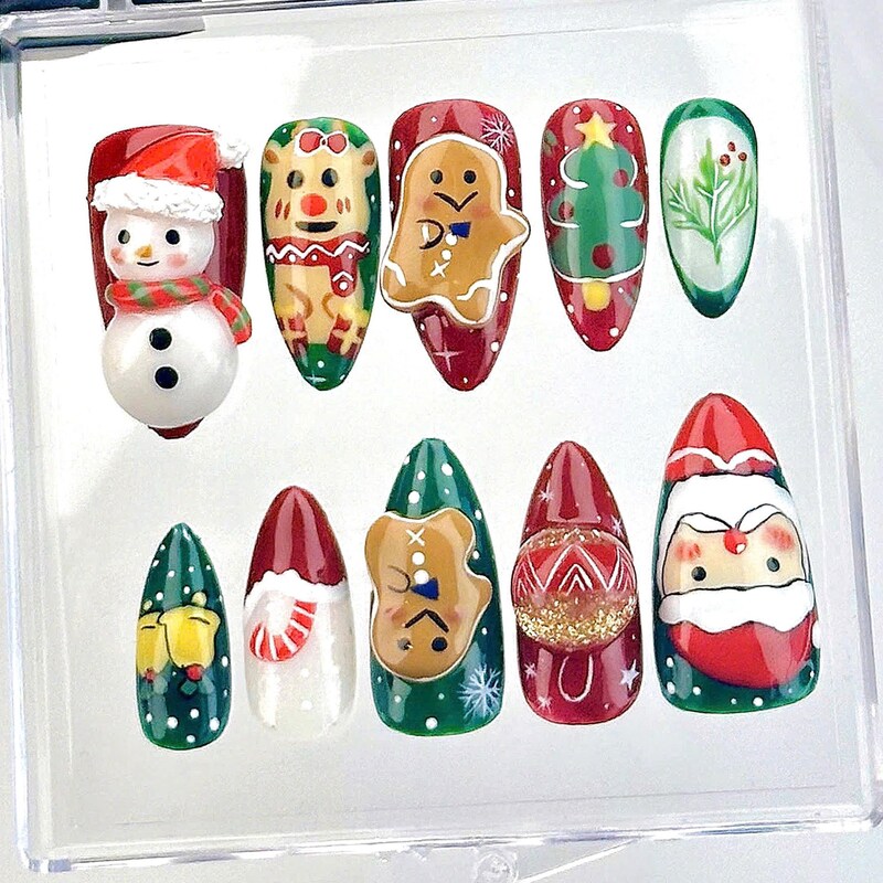 Amazon com Christmas Press on Nails Mid Length French Almond Fake 4