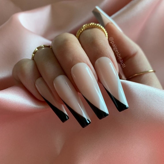 Black and White V Tip Nails Etsy 10