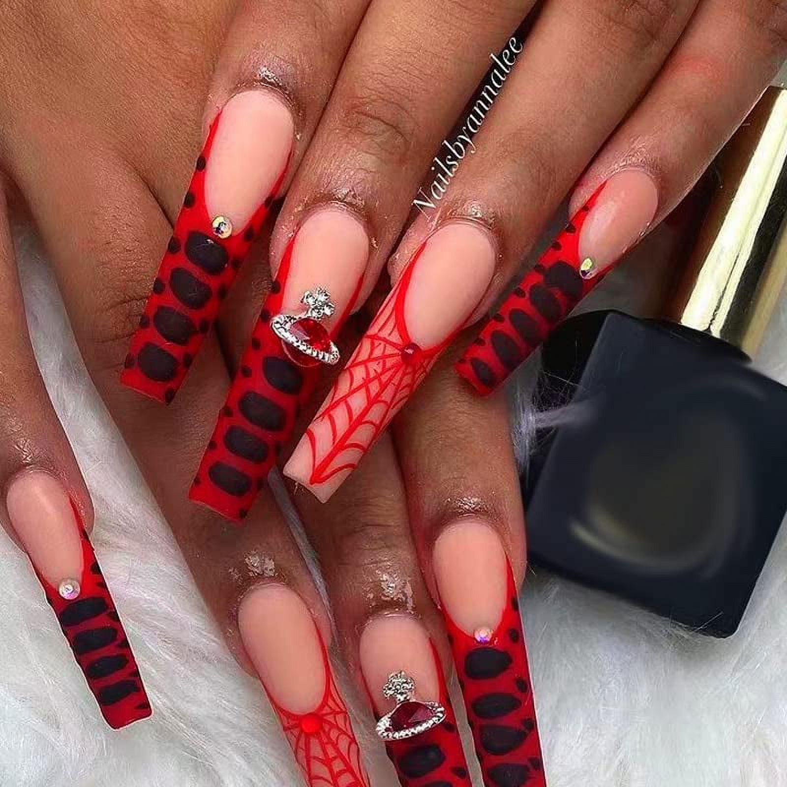 Nails on Black Women Red acrylic nails Long red nails Red gel nails 4