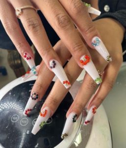 White nails with diamond flowers MustHave Nails Diamond nails White 3