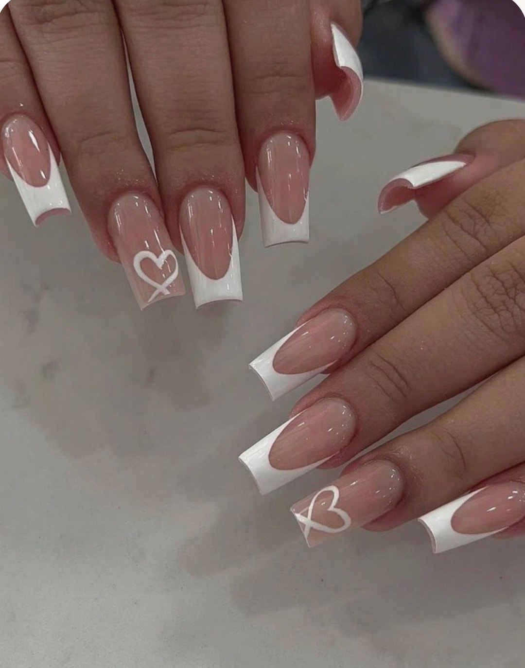 Heart white French tip nails Unghie idee Unghie idee semplici Idee 5