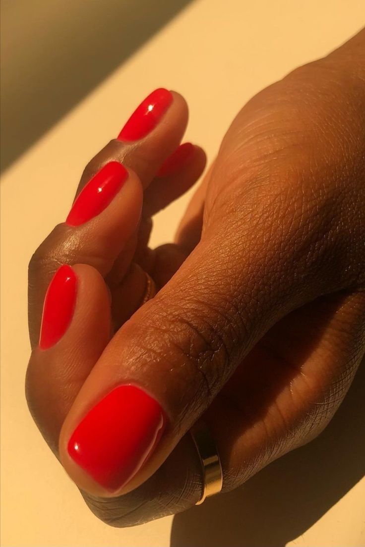 Simple and Classy Classic Short Red Nails for Dark Skinned Women 3