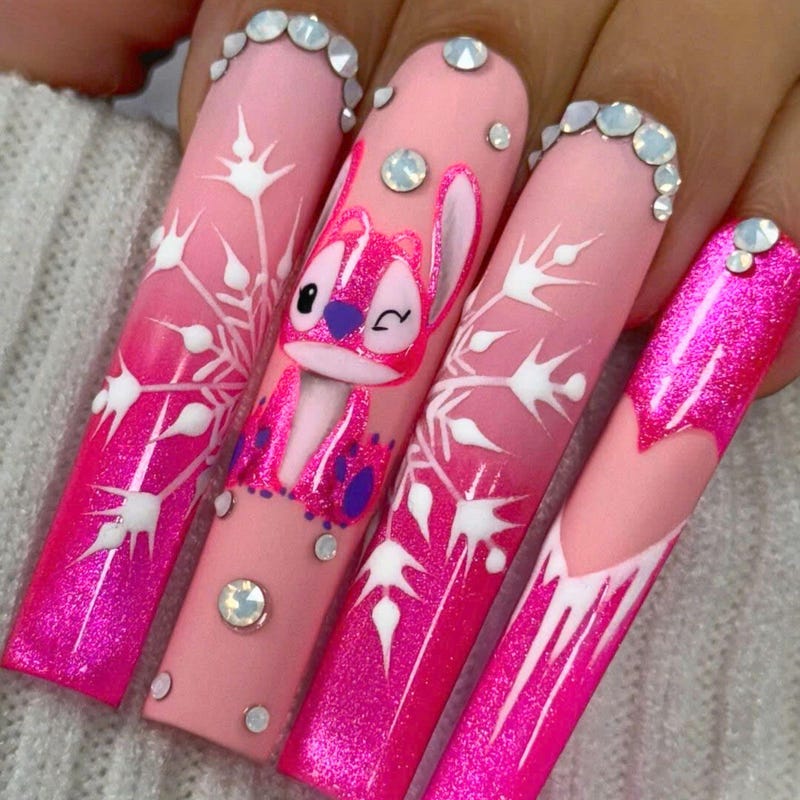 Playful Stitch Etsy in 2024 Kids nail art designs Disney acrylic 2