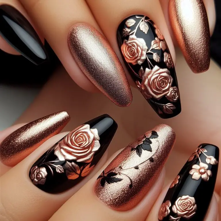 Glam Up with These Stunning 38 Black and Rose Gold Nail Designs 9