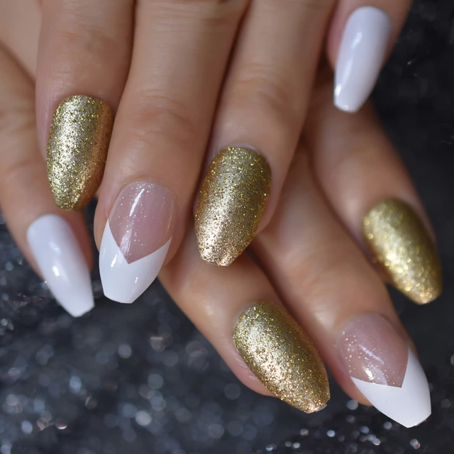 Gold nails white tips gold glitter Gold nails Pretty gel nails Nails 5