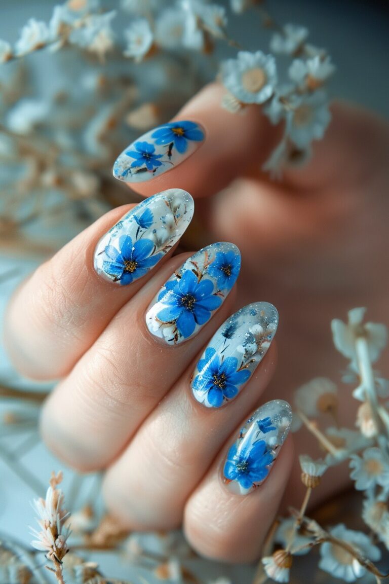 25 Blooming Blue Flower Nail Designs You Must Try aesthetiquelife com 11