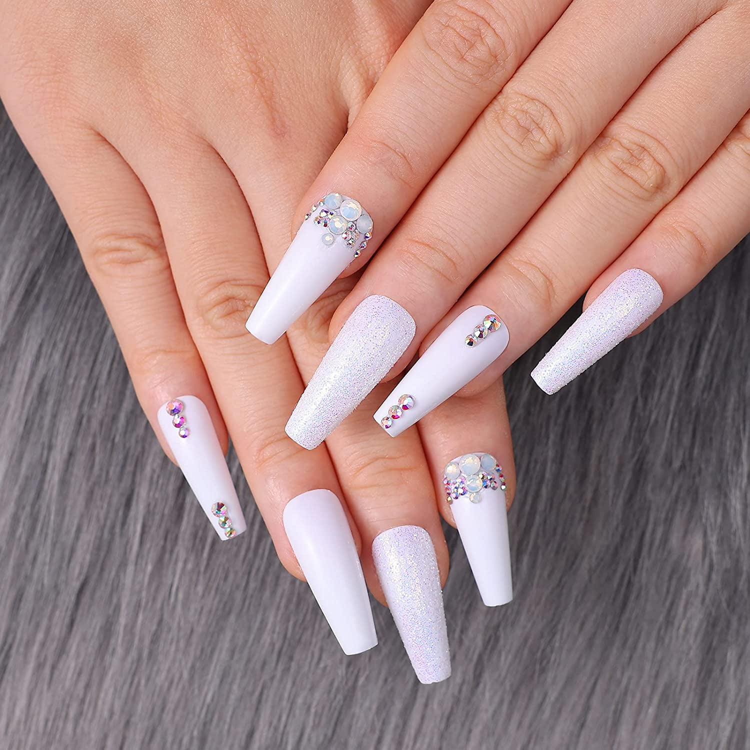 White Sparkly Acrylic Nails Let your nails do the talking with this 1