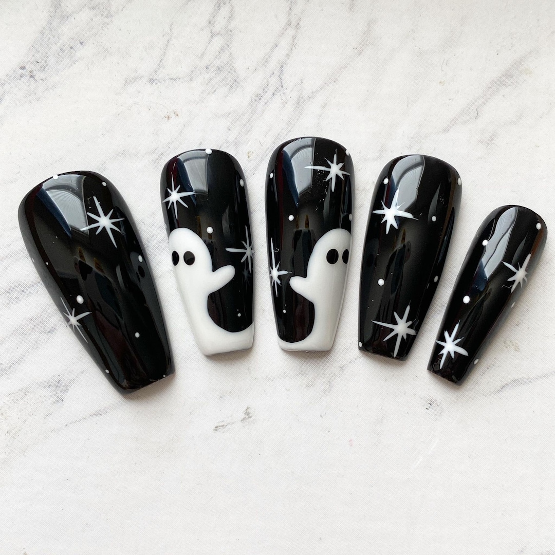 Reusable Spooky Ghost Black Nails With Stars Halloween Press Etsy 5