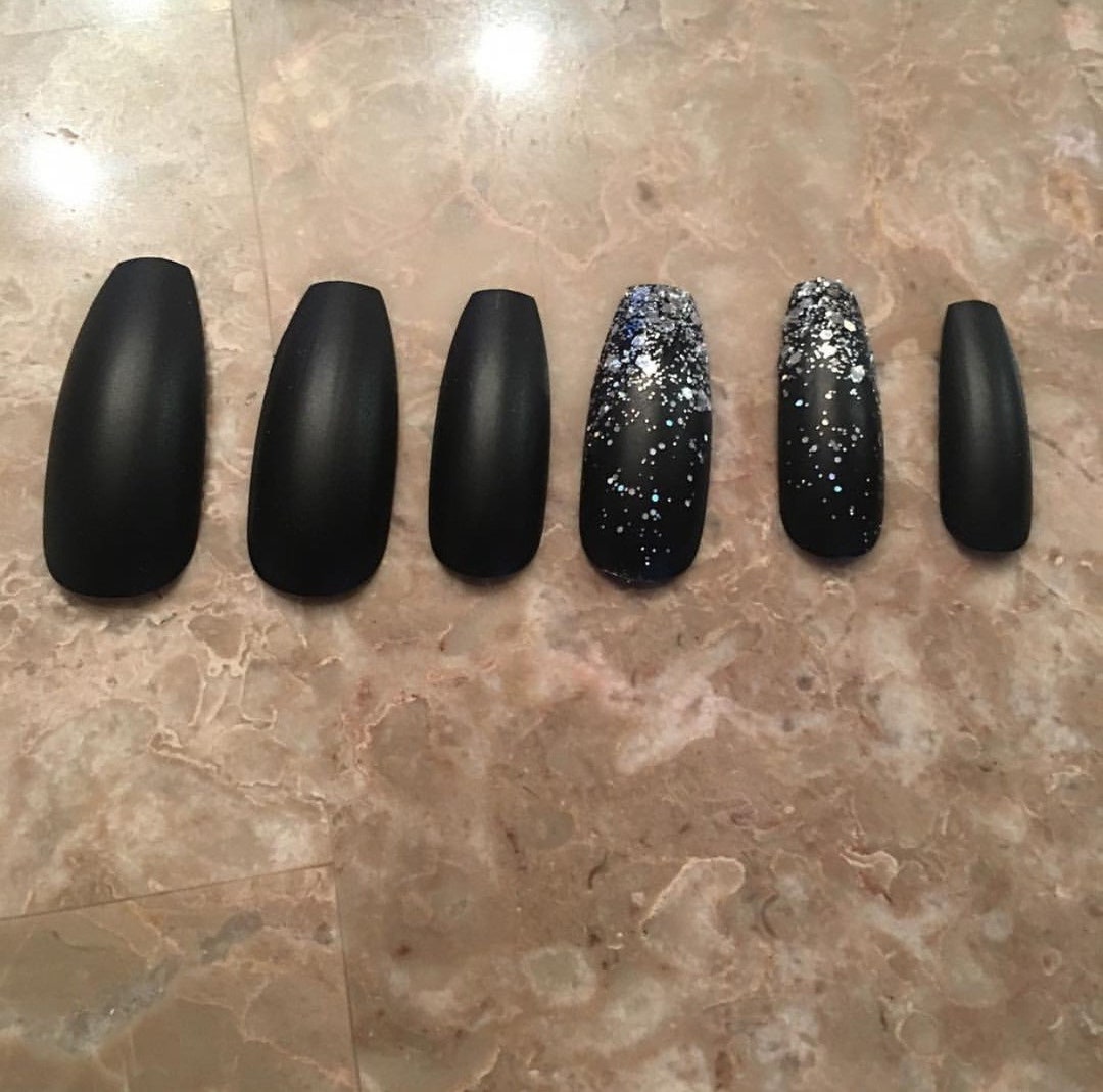 Black matte coffin shape with glitter underneath love my nails Black 9