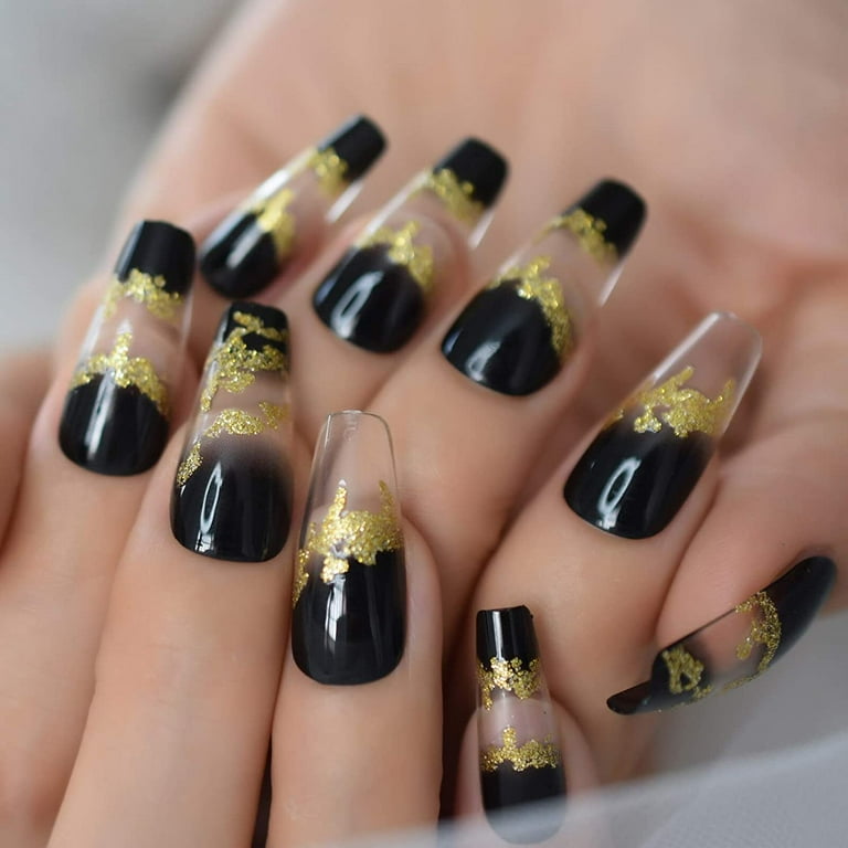 Edgy Black Gold Side Tip Press on Nail Set Etsy Gold acrylic 9