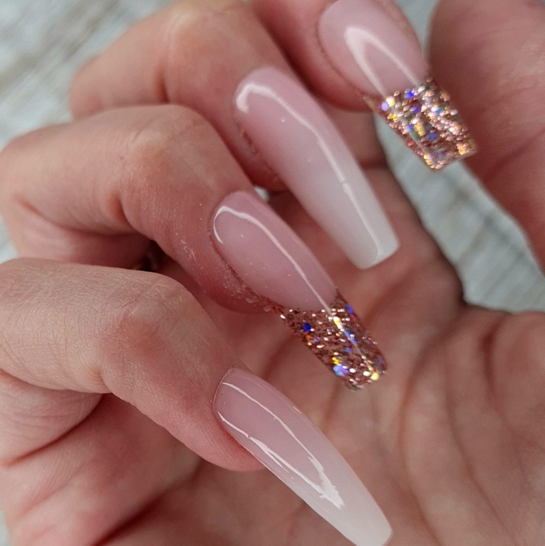 Rose Gold Ombr Glitter Bling Nails Acrylic Coffin ombre Rose gold 0