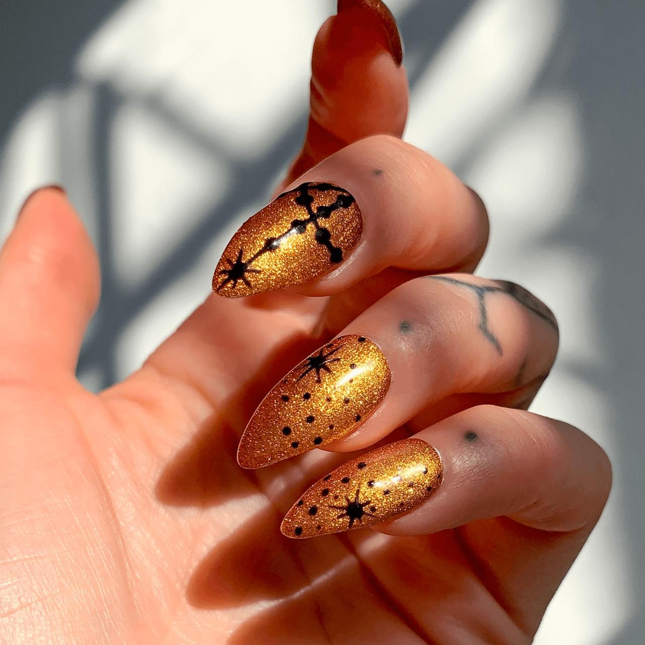 Black And Gold Halloween Moon Nails Pictures Photos and Images for 0