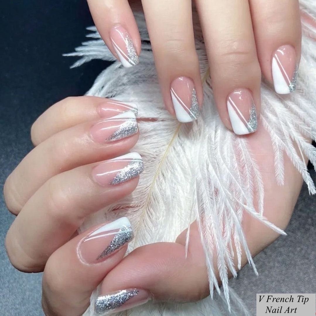 WHITE V CUT FRENCH TIP NAILS GLITTER FRENCH TIP EASY HOW TO 12